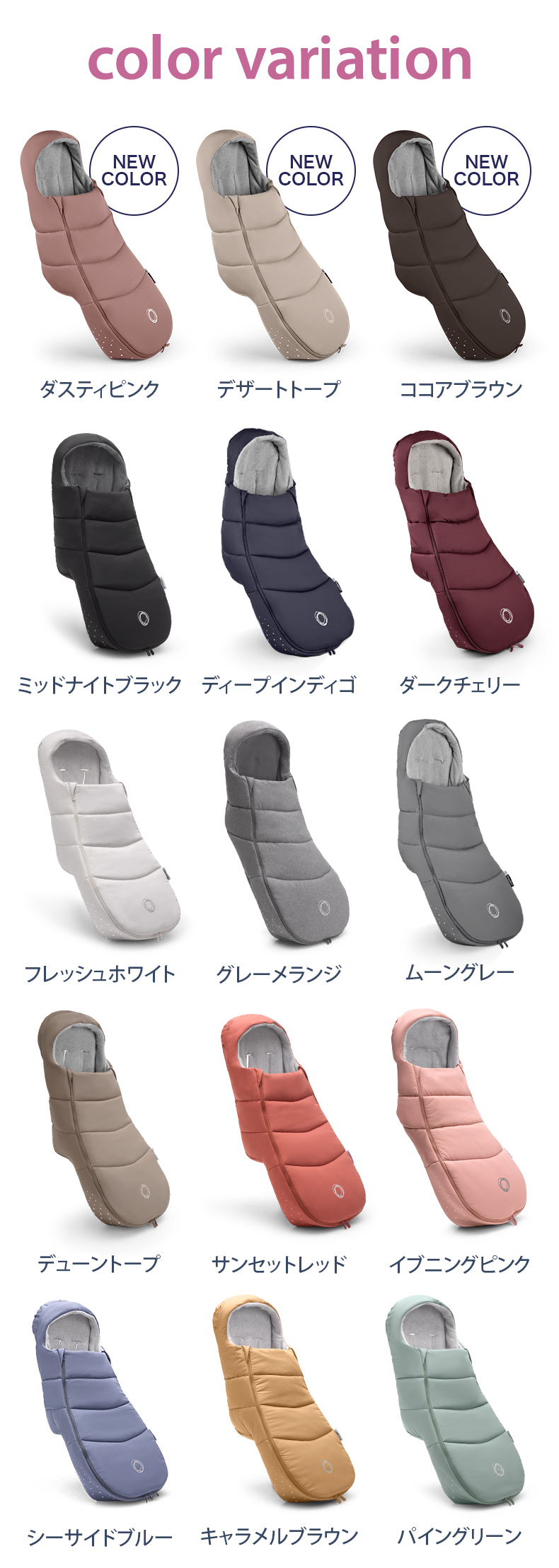 めに簡単に開けることができ、フットマフは折りたたんで便利に収納できます。豊富なカラーバリエーションはストローラーのシャーシと完璧な組み合わせでマッチします。