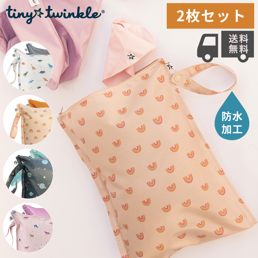 タイニートゥインクル ウェットバッグ 2枚セット 無地 恐竜 虹 宇宙 防水性 スイムバッグ おむつポーチ 軽量 防水加工