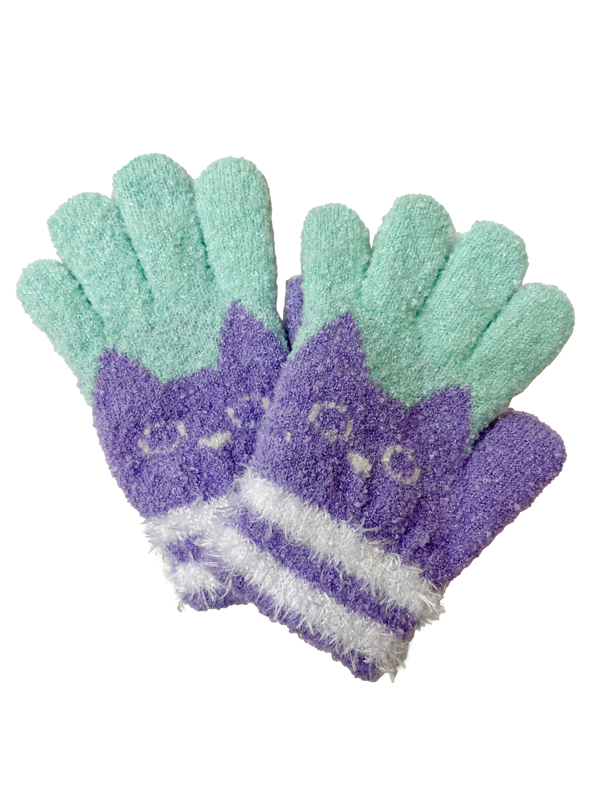 ユアーズアーミーワールド 手袋 ねこ パープル orangebonbon オレンジボンボン 日本製 キッズ ジュニア 女の子 子供 かわいい マシュマロニット 五本指 てぶくろ メール便対応