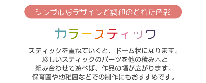 珍しいスティックのパーツを他の積み木と組み合わせて遊べば、作品の幅が広がります。