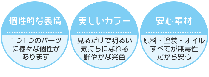 無毒性の水性カラーステイン、無毒性の植物系オイル仕上げになっており、お子様が舐めたりしても、安心してお使い頂けます。
