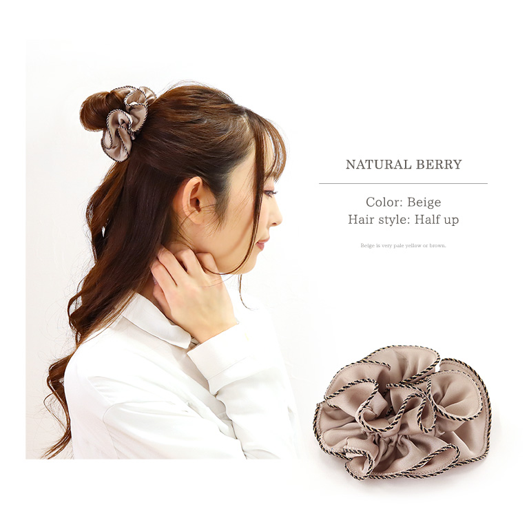 シュシュ サイドストライプ ゴールド ポリエステル 大人 可愛い シンプル ヘアゴム NATURAL BERRY / 売尽し特価 SALE