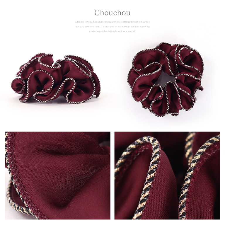 シュシュのサイドにはゴールド×ブラックのストライプデザインが編みこまれていてアクセントになっています♪