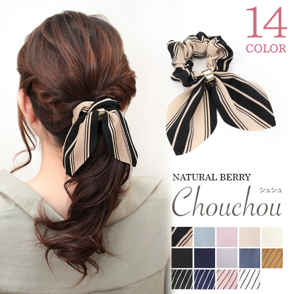 シュシュ リボン スカーフ ヘアゴム ストライプ 無地 おしゃれ 韓国 NATURAL BERRY / 売尽し特価 SALE