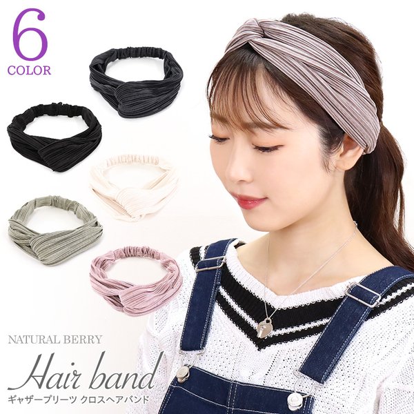 ヘアバンド ターバン 微光沢 プリーツデザイン クロスヘアバンド 無地 韓国 シンプル / 売尽し特価 SALE