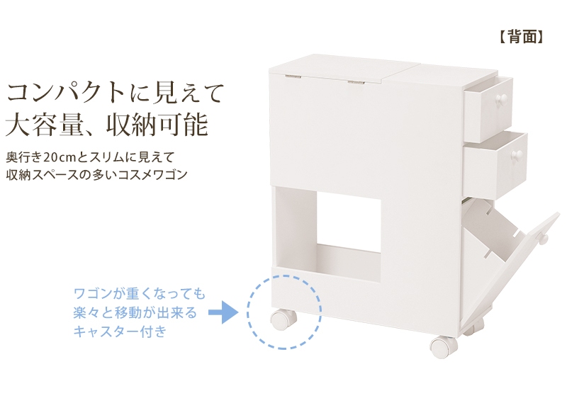 コスメワゴン ホワイト メイクボックス 化粧品入れ ボックスティッシュ収納 ダストボックス付きキャスター付 MUD-6648WH