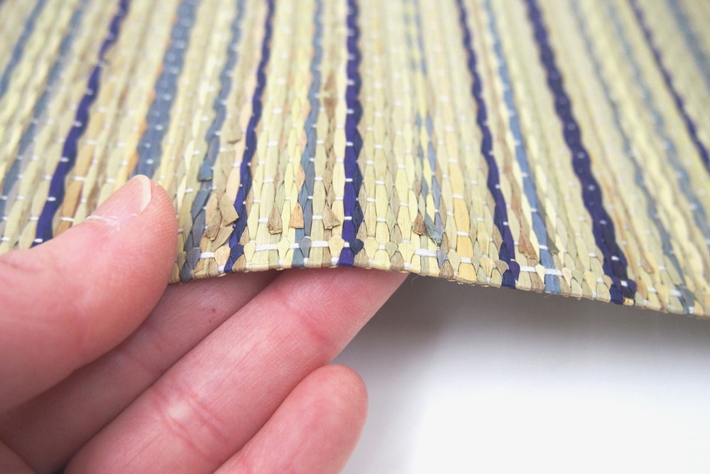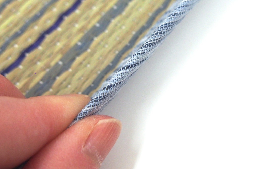 い草生地にプレス加工をすることで表面の凹凸を抑え、