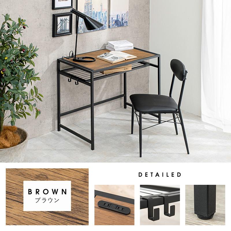 木目調の天板と、スチールフレームのデザインがおしゃれなデスクチェアセット。