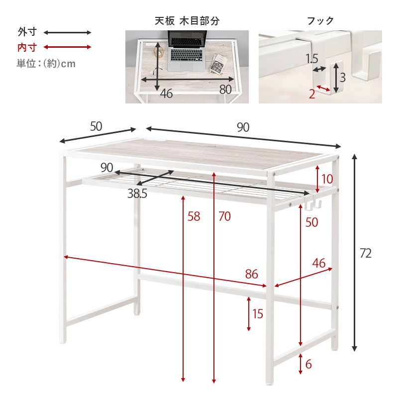 デスク:(約)幅90×奥行50×高さ72cm