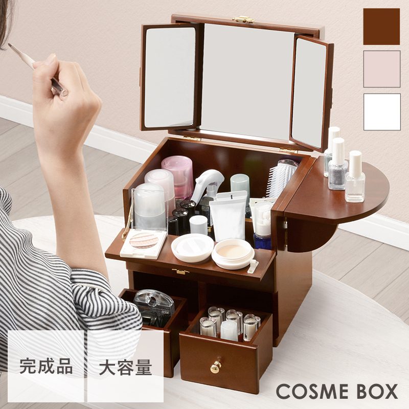 三面鏡がついた大容量のコスメボックス。
