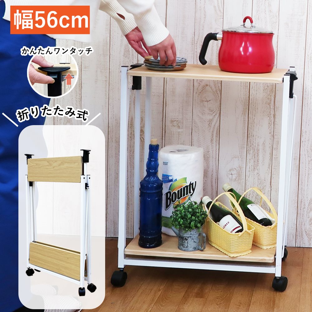 キッチンワゴン 折りたたみ キャスター付き 幅 56 奥行 30 高さ 71 おしゃれ 隙間 すき間 すきま 収納 折りたたみ カート ワゴン 台車 ラック キャスター付