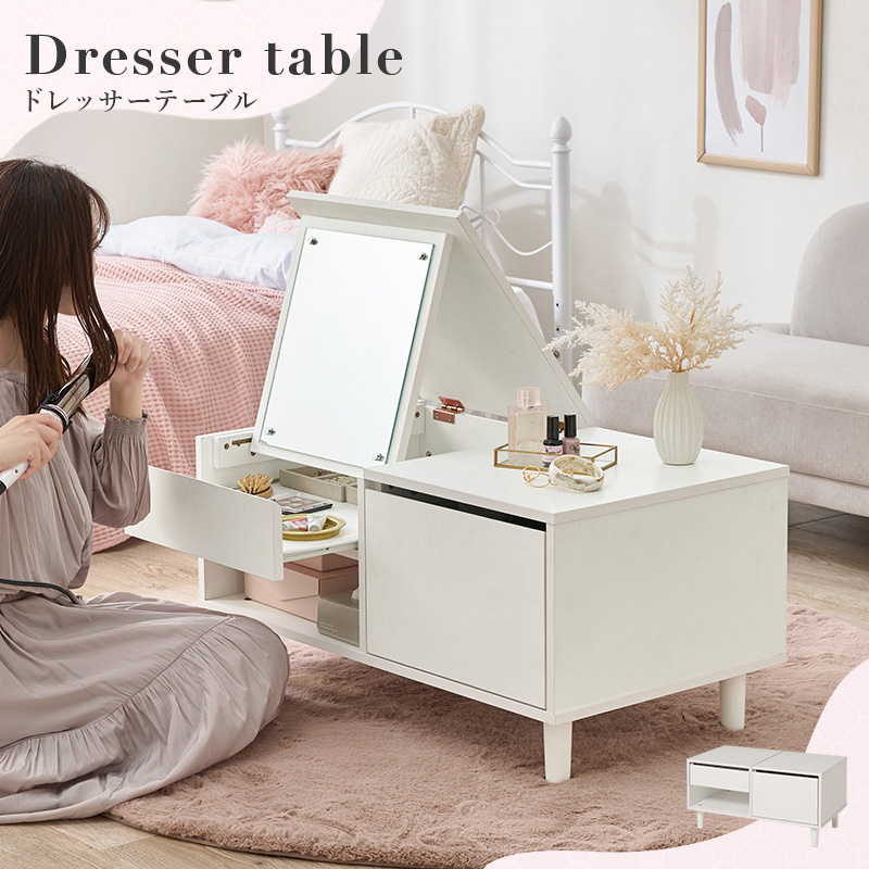 天板を開ければドレッサーとして使えるセンターテーブル。