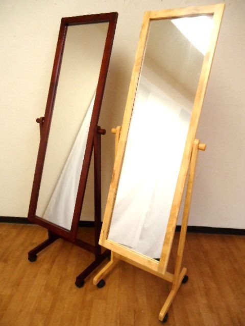 姿見 キャスター 付き 移動 式 スタンドミラー 鏡 全身 ミラー 姿鏡 スタンド 自立式 かがみ 飛散防止 木製 木枠 幅 48 高さ 150 レトロ アジアン ティスト