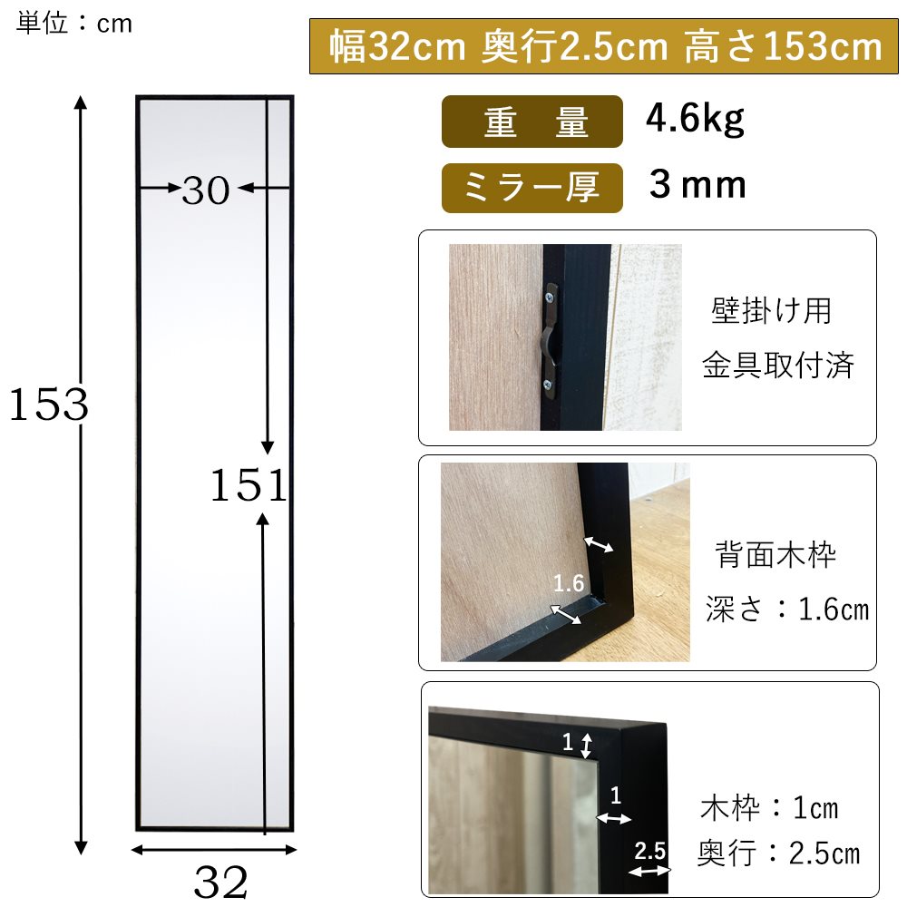 全体 : (約) 幅 32 cm 奥行 2.5 cm 高さ 153 cm