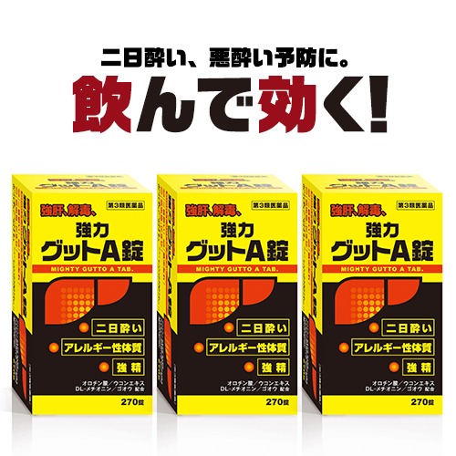 【810錠】 270錠×3個『黄色と黒の 強力グットA錠 』【第3類医薬品】二日酔い・悪酔い対策!ヘパリーゼ を飲んでる方にも