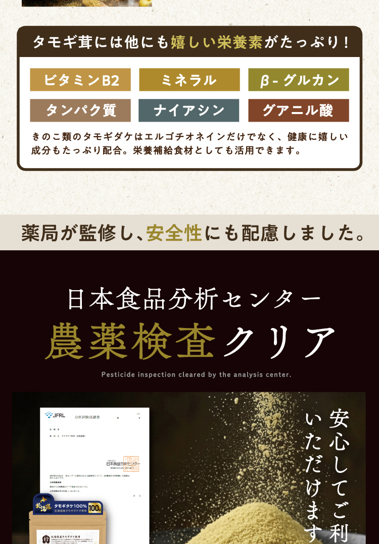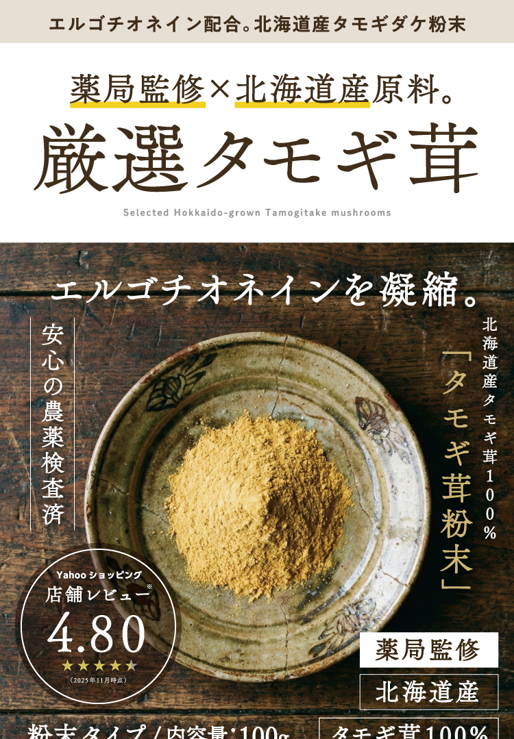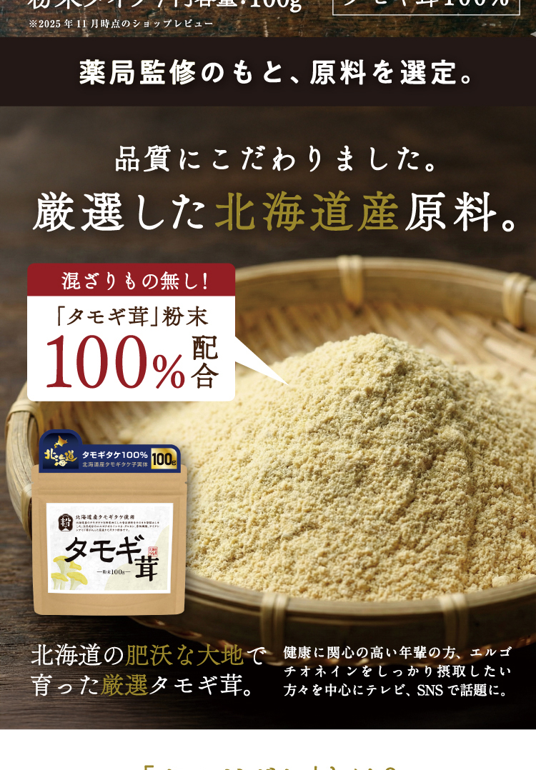 【3個】【北海道産タモギダケを100%使用】『国産 タモギタケ粉末 100g』エルゴチオネイン β-グルカン 食物繊維