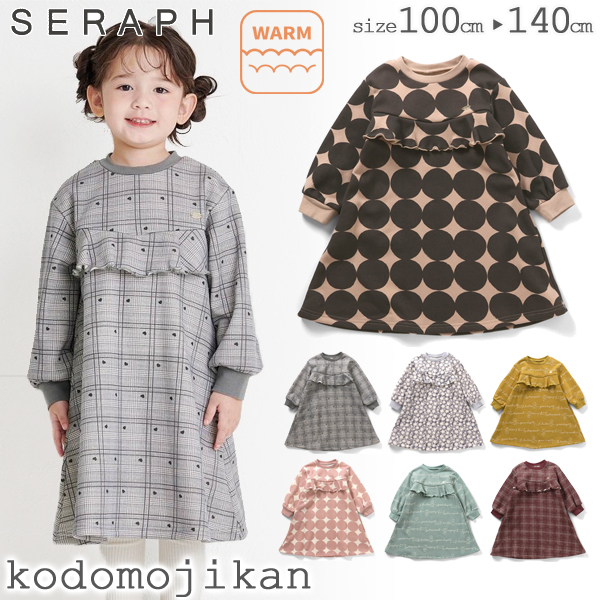 セラフ ワンピース 女の子 seraph 子供服 キッズ まいにち裏シャギーワンピース 花柄 チェック柄 通園 通学 トドラー ガールズ 女児 100cm 110cm 120cm 130cm 140cm 幼稚園 保育園 小学校 小学生 かわいい おしゃれ F.O クリスマス プレゼント