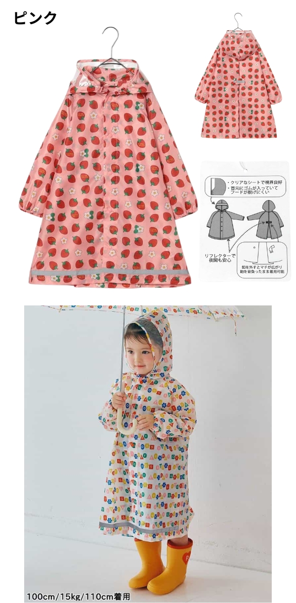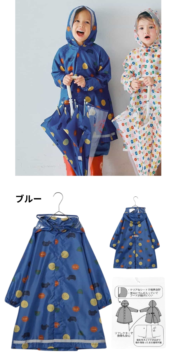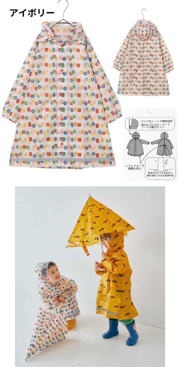 通学、通園はもちろん、林間学校や遠足などのアウトドア活動にも最適。雨の日が待ち遠しくなる、そんなレインコートです。