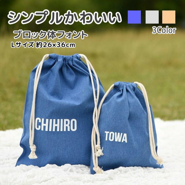 巾着 名前入り Lサイズ 上履き入れ 着替え入れ 入園 入学 体操着袋 給食袋 バック オリジナル 人気 幼稚園 小学生 ブロック体 2L