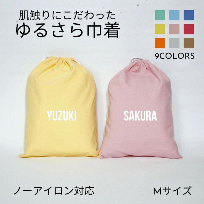 肌ざわりにこだわった、オリジナル素材使用のシンプルデザインの巾着袋