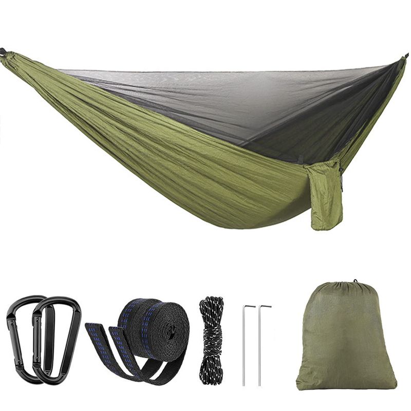Lenzai 最新型 ハンモック 蚊帳付き 虫対策 パラシュート 通気 快適 軽量 4点セット 収納袋付き カラビナ付き 野営 ソロキャンプ