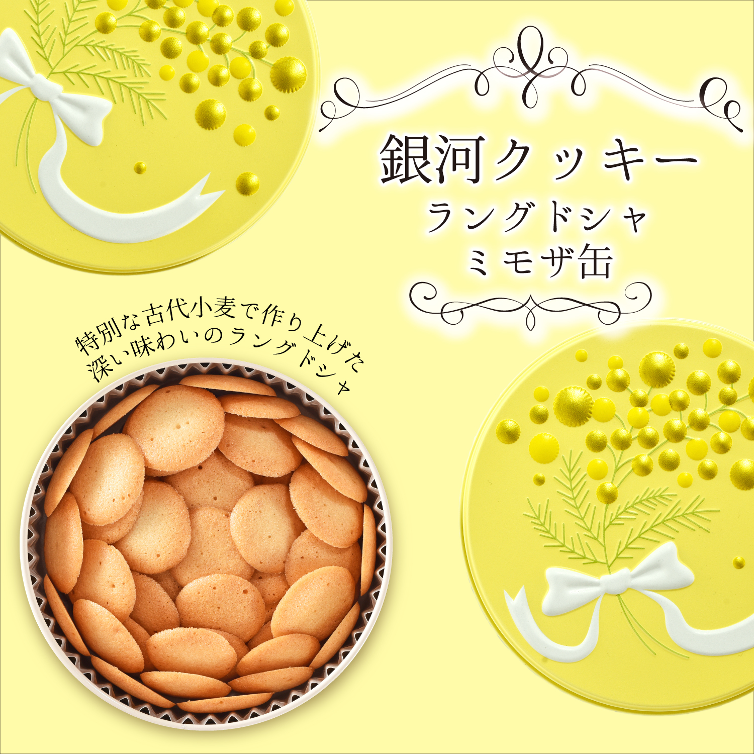クッキー缶 プチギフト 4缶以上送料無料 銀河クッキー ラングドシャ ミモザ缶 お菓子のミカタ クッキー 缶 かわいい 御歳暮