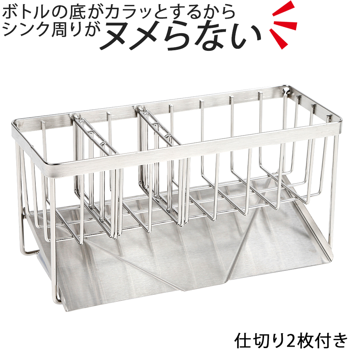 2枚の仕切りで、スポンジの使い分けや洗剤ボトルを自由に収納することができます