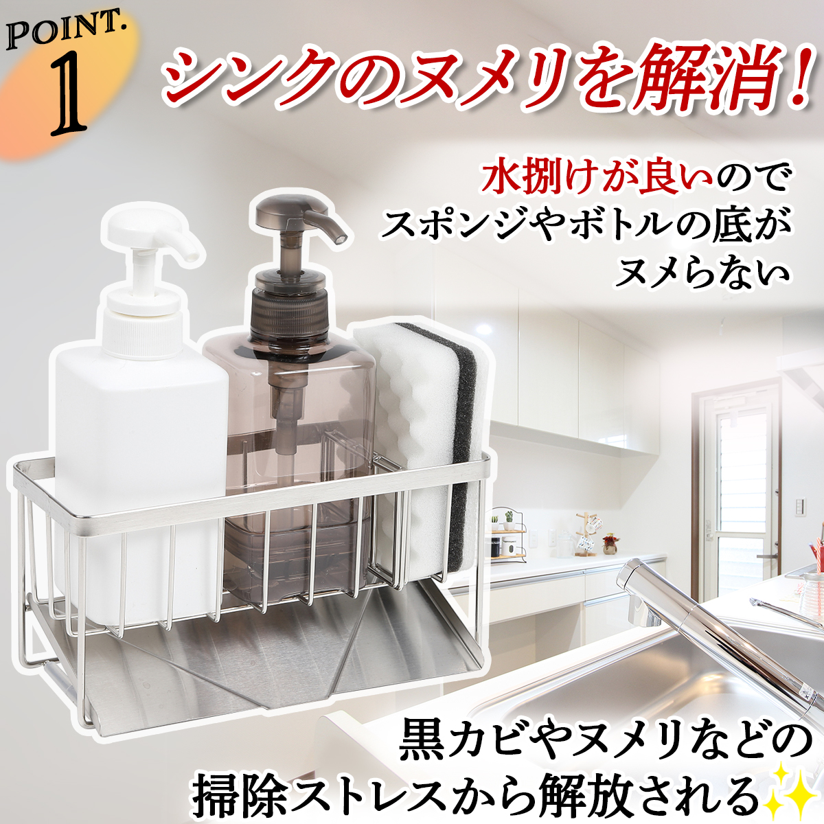 スポンジホルダー(スポンジラック) 仕切り2個付き、足元に保護シリコン付きでシンクが傷つかない