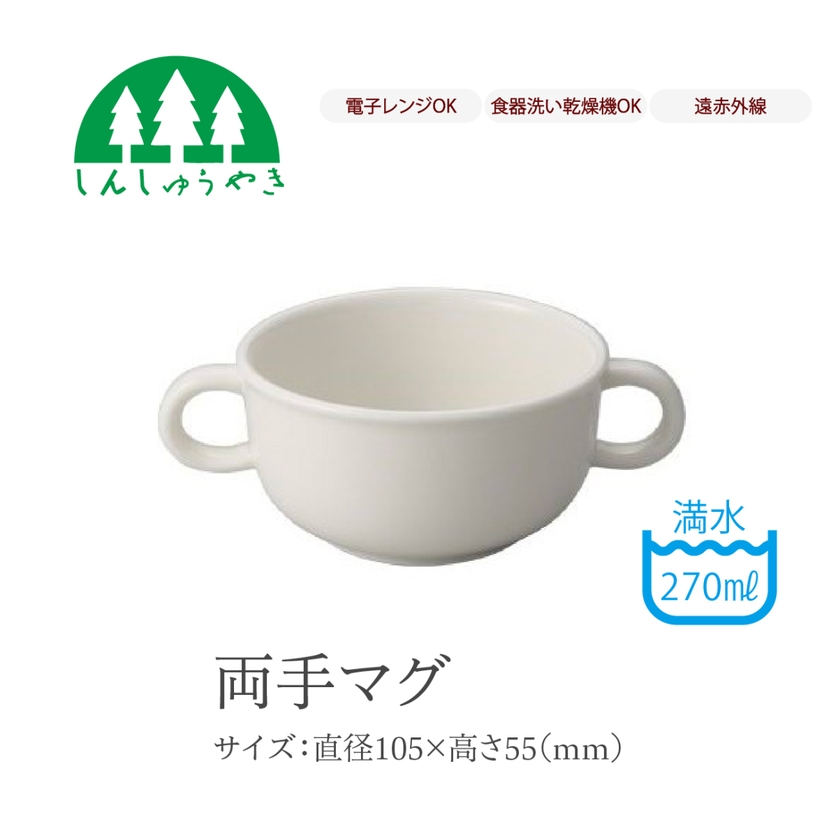 森修焼 食器 459 両手マグ 無地 白色 マグカップ シンプル 電子レンジ 食洗機 日本製 遠赤外線