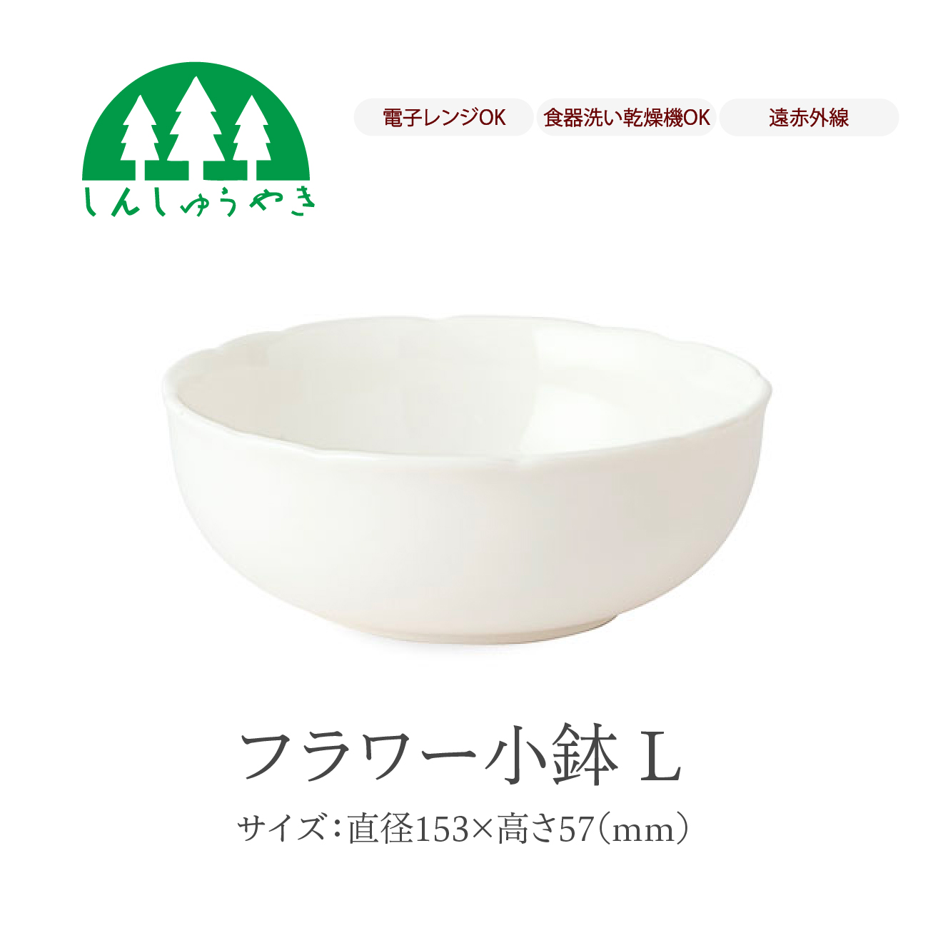 森修焼 食器 624 フラワー小鉢L 丼 どんぶり シンプル 白色 電子レンジ 食洗機 日本製