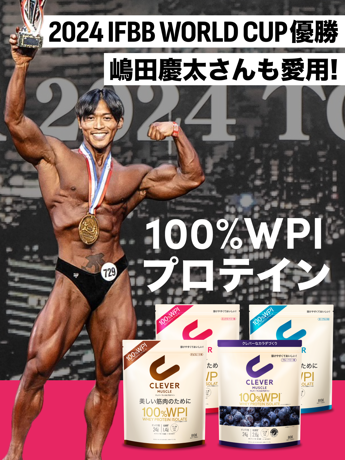 | 商品名 | クレバー マッスル プロテイン ・チョコレート味 ・ミックスベリー味 ・ヨーグルト味 ・ブルーベリー味 |
