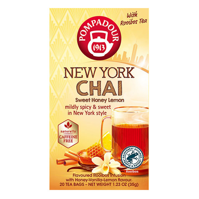 ● ポンパドール ニューヨークチャイ ルイボスティー 20ティーバッグ スパイスとやさしい甘さが楽しめるノンカフェインの「ポンパドール ニューヨークチャイ ルイボスティー」 新発売