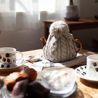 お友達とのおしゃべりに夢中になっても安心。ティーポットを優しく包み、お茶を保温してくれるウール製ティーコジーです。ふわふわのポンポンがかわいいデザインです。