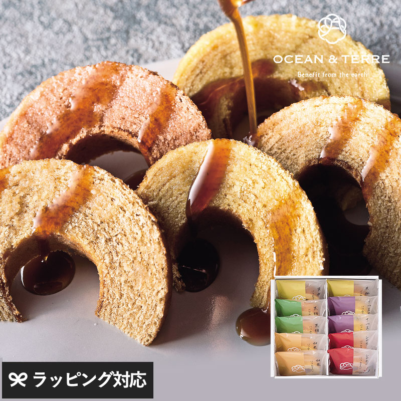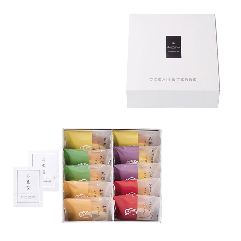 | 特徴 | ・“ハズシ”が効いたバームセット 結婚式をはじめとしたお祝いに定番のバームクーヘンを贅沢に仕上げつつ、ちょっとひねりを加えた『極バームセット』です。定番すぎるからこそ選ぶのにちょっと戸惑うバームクーヘンも、これなら自信を持ってお選びいただけます。 ・黒蜜をかけておいしさをプラス バラエティ豊かな5種類のバームクーヘンに黒蜜を別添えしたセットです。そのままでもおいしいのに、黒蜜をかけて味変(あじへん)まで楽しめるから、合計10種類の味が楽しめます。コーヒーに合う味わい。紅茶に合う味わい。日本茶に合う味わい。色々な味わいのバームクーヘンがブレイクタイムに彩りを添えます。 ・和テイストの粋なパッケージ 家紋のような紋様が入った和テイストのパッケージで包みました。結婚式の引出物や内祝いなど、お祝い事にまつわる贈り物に最適です。 ◆セット内容 黄粉バーム×2、黒糖バーム×2、シナモンバーム×2、さつま芋バーム×2、和栗バーム×2、黒蜜×2 ◆ブランド OCEAN & TERRE(オーシャン&テール) 日本の自然の恵みをシンプルに伝える。厳選された海(OCEAN)と大地(TERRE)の宝物を大切に、丁寧に手を加え、本物の美味しさを…。贅沢な時間をお届けするギフトコレクションです。 |