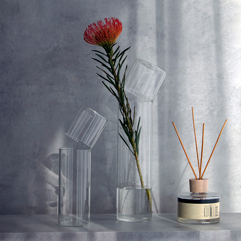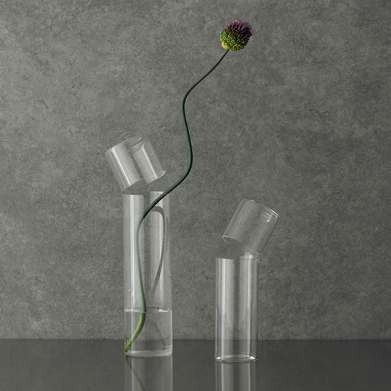 切込み部分にお花を差し込む、他にはないデザインが特長のフラワーベース。クリアカラーとシンプルな形状でどんな空間にもマッチし、おしゃれで上質な雰囲気を演出します。