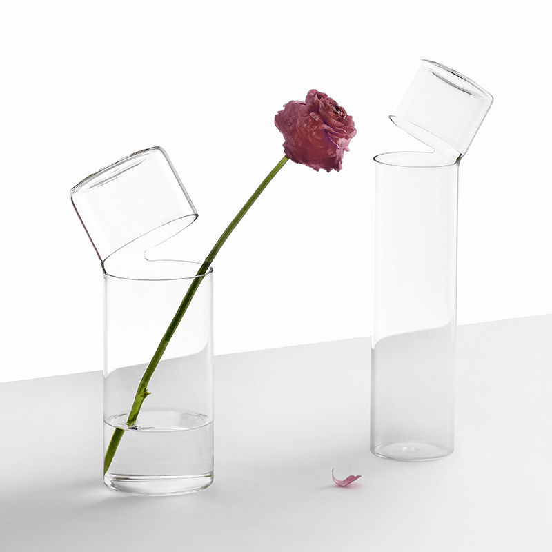 切込み部分にお花を差し込む、他にはないデザインが特長のフラワーベース。クリアカラーとシンプルな形状でどんな空間にもマッチし、おしゃれで上質な雰囲気を演出します。