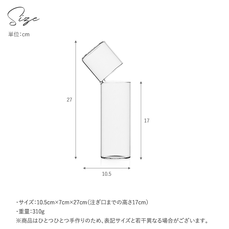 | サイズ/重量 | ・サイズ:10.5cm×7cm×27cm(注ぎ口までの高さ17cm) ・重量:310g ※商品はひとつひとつ手作りのため、表記サイズと若干異なる場合がございます。 |