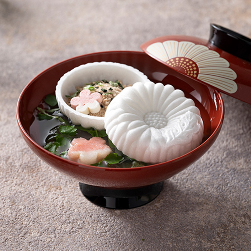 かわいい、おいしい、体にやさしい。まるでマカロンのような野菜スープ最中と、高貴で気品のある菊紋の最中に包まれた、お吸い物とお味噌汁のセットです。最中を丸ごと入れて、熱湯を注いでかき混ぜるだけ。手軽で見栄えも楽しく、お子さまからご年配の方まで気軽にお召し上がりいただけます。