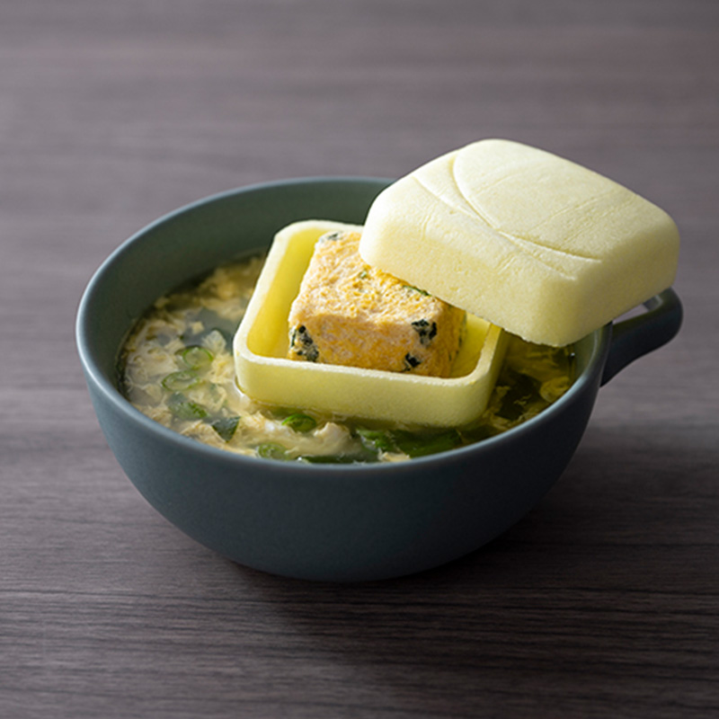 具沢山のフリーズドライスープを最中で包んだ、スープ最中。味は「たまごとわかめ、濃厚たまねぎ、きのこと生姜」の3種類。熱湯に溶ける、最中の変わりゆく食感がお楽しみいただける逸品。手軽で見栄えも楽しく、お子さまからご年配の方まで気軽にお召し上がりいただけます。