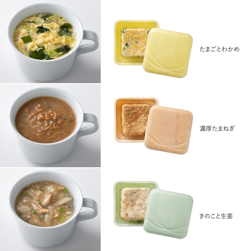 スープカップに入れて熱湯を注ぐだけでスープの出来上がり。お仕事や育児で忙しい朝も、さっと作って、おいしく栄養を摂ることができます。