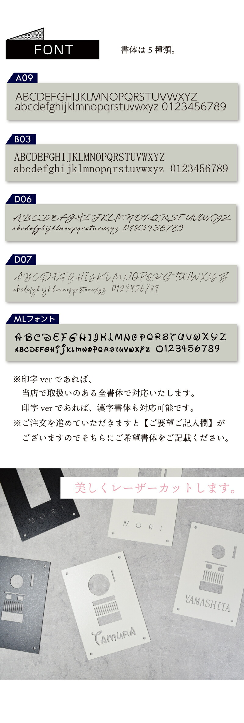 ございますのでそちらにご希望書体をご記載ください。