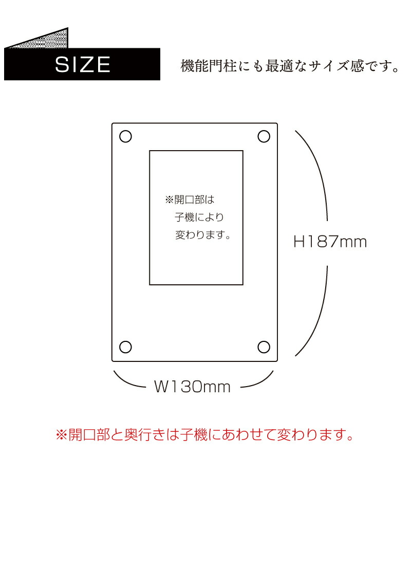 ※開口部と奥行はインターホンの子機品番に合わせて変わります。