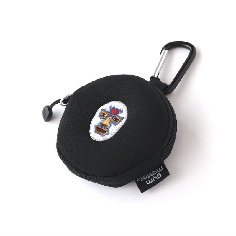 ●シンプルな「まるい」コインケースで、クッションのある柔らかいのネオプレーン素材にポップな刺繍が映えます。