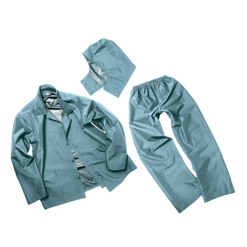 ●さっと羽織れる軽量レインウェアセットアップ。ジャケットは襟付きでワークシャツのように着ることができます。