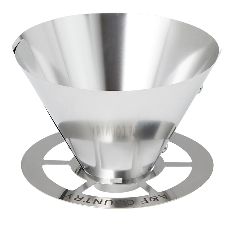 ●エイアンドエフ ラウンドドリッパーは紙のように薄い0.15mmのステンレスシートから作った折りたたみ式コーヒードリッパーです。