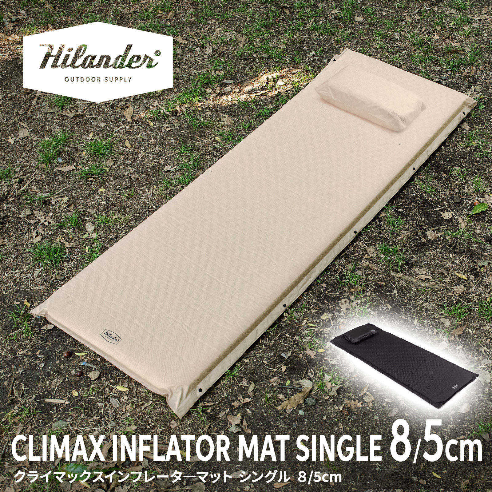 アウトドアマット ハイランダー クライマックスインフレーターマット シングル 8cm・5cm 1年保証 8cm シングル ベージュ