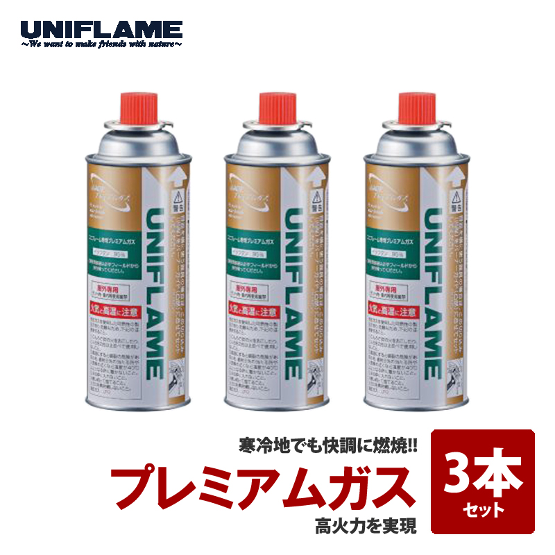 商品説明 高純度プレミアムガス誕生!高火力を実現。さらに低温時に威力を発揮します。(氷点下1℃、ボンベが凍り付いても燃焼を続けます。)燃え尽きるまで炎は元気。 ●寒冷地でも快調に燃焼するプレミアムガス ●UNIFLAMEのガス燃焼機器はすべて「カセットボンベ」を使用。ボンベ内部のL型のパイプはボンベを縦や横に使った時でも液体を取りにくくして気体だけを取り込める様な形状になっています。 ●高火力を実現! ●従来品に比べ「プレミアムガス」は、高い蒸気圧のため、常温使用時は約15%以上(単位時間当たり)火力がアップします。 ●また、火力も一定でほぼ安定的に燃焼します。 ●低温時に威力を発揮!!外気温が-10℃であっても着火し、燃え続けます。 ●燃えつきるまで炎は元気!イソブタンの持つ高い蒸気圧は、通常使用においてボンベ中にガスが残留することがなくなり、廃棄ガスボンベの爆発事故を大幅に減らすことができます。 仕様/規格 イソブタン95%・NET250g ●3本セット メーカー品番 650035 関連商品 対象ユーザー |