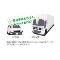 車両の電源が12Vの普通車はもちろん、24Vのトラックや大型RV車などでも使えます。