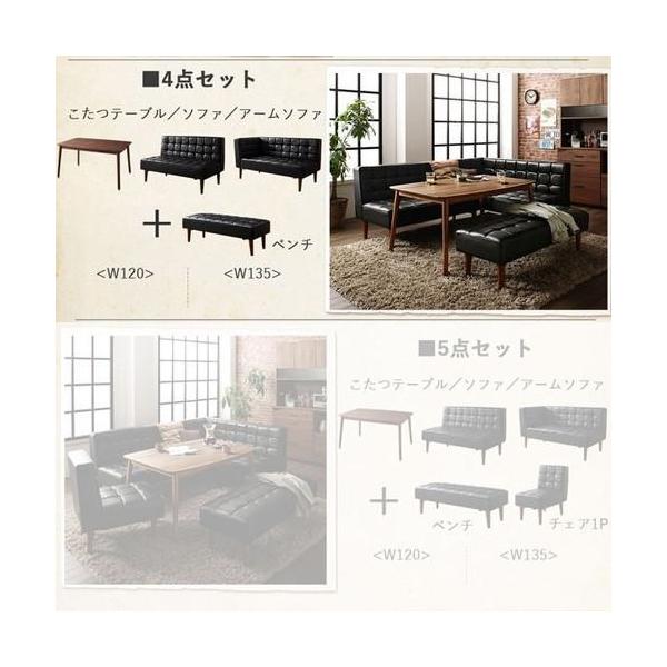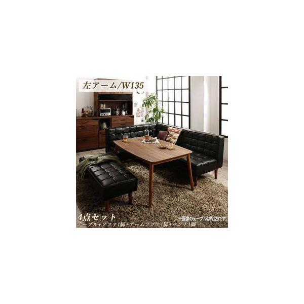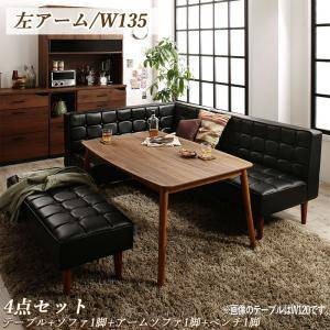 ダイニングテーブルセット 6人用 コーナーソファー L字 ベンチ 椅子 レザー 4点 (机+ソファx1+左肘x1+長椅子x1) 幅135 西海岸 レトロ 高さ調節 低め こたつ