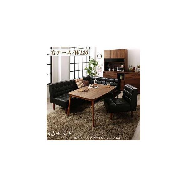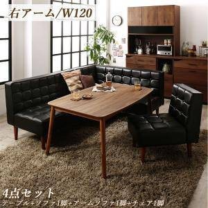 ダイニングテーブルセット 5人用 コーナーソファー L字 ベンチ 椅子 レザー 4点 (机+ソファx1+右肘x1+チェア1) 幅120 西海岸 ヴィンテージ 高さ調節 低め こたつ